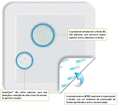 Retenção de altos níveis de exsudato pelo SuperCore®