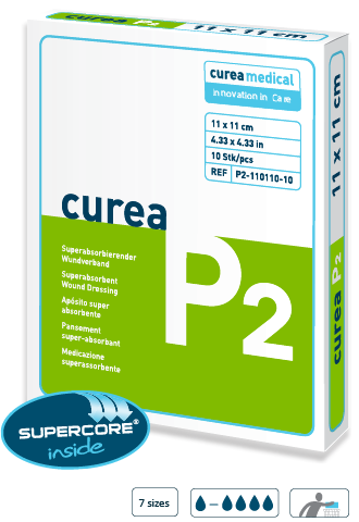 curea P2 foi desenvolvido com prioridade para feridas com níveis de exsudato leves a pesadas, com tecido de granulação.